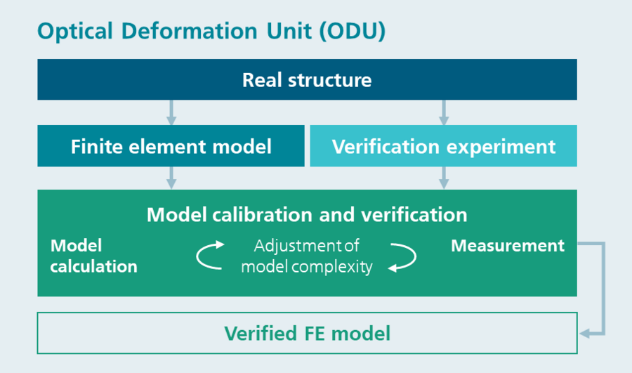 The Optical Deformation Unit (ODU) was developed at Fraunhofer IKTS to confirm the credibility of the results of the FEM calculations. This can be used to carry out deformation experiments that enable FEM model calibration and verification.